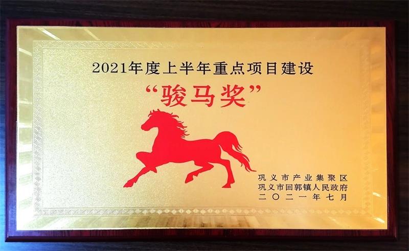 為貫徹落實(shí)“萬(wàn)人助萬(wàn)企”活動(dòng)安排,推動(dòng)我鎮(zhèn)經(jīng)濟(jì)高質(zhì)量發(fā)展和推進(jìn)重點(diǎn)項(xiàng)目落地實(shí)施,2021年7月17日上午,鞏義市產(chǎn)業(yè)集聚區(qū)高質(zhì)量發(fā)展暨項(xiàng)目建設(shè)推進(jìn)會(huì)在回郭鎮(zhèn)政府召開。回郭鎮(zhèn)全體班子成員、規(guī)上企業(yè)負(fù)責(zé)人、機(jī)關(guān)中層及鎮(zhèn)直部門等200余人參加了此次會(huì)議和重點(diǎn)項(xiàng)目觀摩活動(dòng)。公司被授予“2021年度上半年重點(diǎn)項(xiàng)目建設(shè)駿馬獎(jiǎng)”。